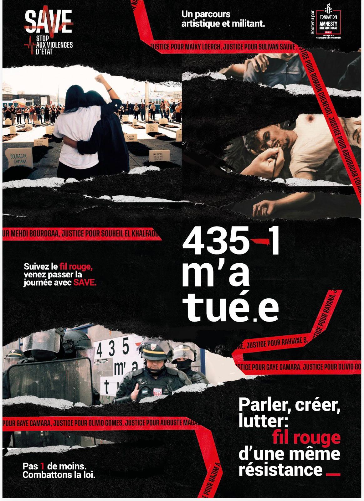 435-1 m’a tué.e naît de cette réalité. Un projet militant qui utilise l’art pour mettre en accusation une loi, dénoncer ses conséquences mortelles et exposer la mécanique d’impunité qui suit les tirs policiers. Une exigence claire : l’abrogation de l’article L.435-1 du CSI.